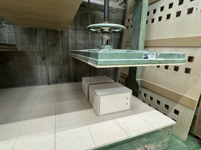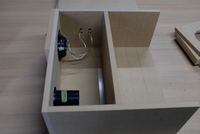 さて、今回試聴機はMDFの試作品で容積は24L、音工房としては比較的大型のブックシェルフ型BHBSです。(1)(2)で内部構造、ネットワークが違うので音はかなり違います。借り物のCDですが、何時ものイーグルスホテルカリフォルニアライブ版から試聴しました。最初一番右端で聴いていた時は(2)の方が音が前に出ているように感じましたが、中央で試聴すると(1)の方が奥行き感あり躍動感を感じました。(2)の方は広がり感はありますが私は空間表現に勝る(1)の方の音が気に入りました。但し、差はあまりなくソースによっては評価が逆転する可能性があります。低域から高域まで過不足なく、同軸のためか定位は流石に良く2wayの繋がりも全く気になりません。ネットワークも違うとのことなので(3)(4)は無しで、箱の内部構造違いとネットワーク違いの4台で比較できたらもっと深く探れたのにと残念に思います。もし、MDFとバーチの比較試聴会をやられることが有れば、ネットワーク違いの差のみも試聴したく要望しておきます。2曲目は低音を比べるため鬼太鼓座のCDを借りました。太鼓の音は直接音の鋭さを比較するのに一番差が出ると思います。弦楽器などの場合響きが邪魔して差が分かり難くなると思います。太鼓の音をリアルに再現できるスピーカーが生音に近いスピーカーと感じます。特に低音の大太鼓は小型ユニットではなかなか再生が難しいジャンルではないでしょうか。さて結果は、私には低域は差が分かりませんでした。2台とも甲乙つけ難いと云った仕上がりで、どちらの箱が良いかは中高音の好みで賛否が分かれると思いました。一応、挙手は(1)にしましたが別の曲なら(2)の方に挙手していたかもしれません。次の(3)(4)を聴いて思いましたが、こちらの箱もBergamoのようにバッフルに大きな面取り加工を加えると更に良くなるのではと思います。