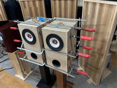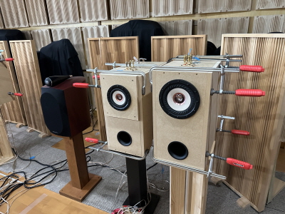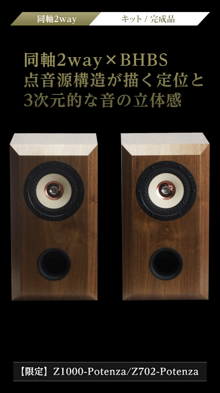 最初に結論を言うと久しぶり?の音工房Zらしい音でした。低域モリモリでサブウーファー無しでも十分な低域+同軸型2ウェイの高域と、上下?に伸びているため非常にワイドレンジな仕上がりでした。うっかり最後まで用意していていただいていたスーパーツイーターを追加してもらうのを忘れてしまったほどです。さすがに16cmウーファー+BHBSは低域の圧がすごかったです。16cmはZ1000(Z701)-FE168SSHP 以来で暫くぶりに聴きましたが、迫力は10cmまでのユニットでは聴くことができないものでした。小型ユニットの繊細な音も捨てがたいものがありますので、曲によって使い分けるのがベターですね。同軸型ユニットの特性と点音源を考慮した面取りバッフル(完成品のみ)などのため大味な音ではなく、解像度の高い定位とTangbandの高級ユニットに共通する艶っぽい音色が楽しめます。フルレンジと比べてもネットワークに時間を割いた効果が現れていて自然な繋がりです。但し、いじれる要素も多いので設定によって好みが分かれそうですが、自分好みの音に仕上げる楽しみと考えればこれはメリットと考えていいのではと思います。