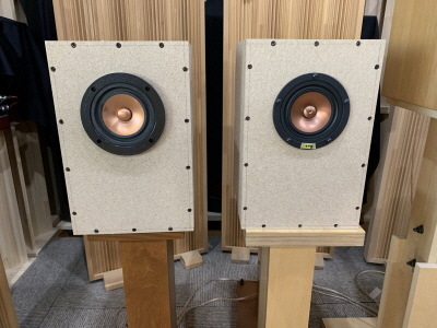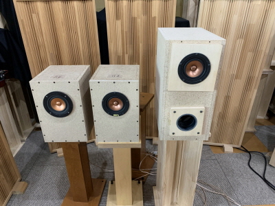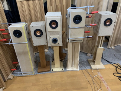 後日、偶然弊社の工場に立ち寄っていただいたブログハイエンド自作スピーカーの石田様にも聞いていただき外観と音に良い評価をいただけたので自信がさらに深まりました。