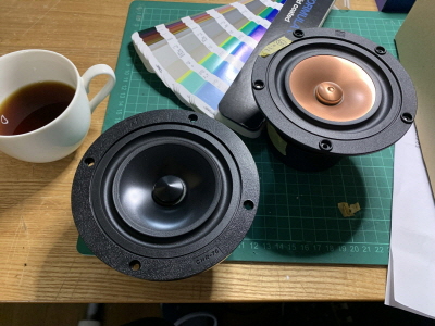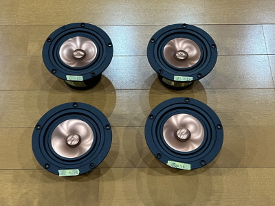 待つこと4ヶ月後ぐらいになりますが、フィディリティムサウンドの中島様よりPluvia7をベースにQtsを下げた2パターンの試作版のユニットが届きました。マグネットとボイスコイルから再設計して作っていただいたので、時間がかかったようです。