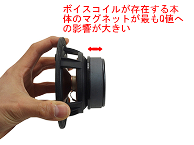 スピーカーのマグネットはボイスコイルが部分がマグネットの磁力の影響を最も受けます。そのためQtsを根本的に大きく変更したい場合はマグネットを厚くするか径を大きくして再設計するのが本来です。しかし、説明したきたようにマグネットの後ろに追加でマグネットをつけでも多少磁力が上がるのでQtsを多少は変えることができます。
