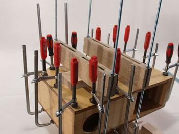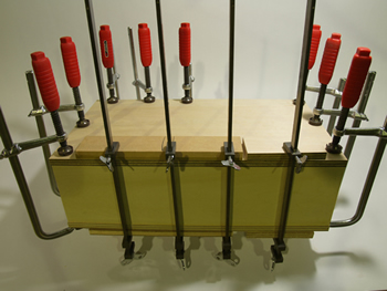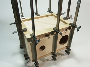 一度に多くのクランプを利用するのは音道と側板を接着する時になります。↓