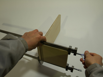 またクランプに思い切り圧力をかけ長期間にわたってご利用いただく場合は写真のように桟の部分に30mmのコースレッドビスで補強を行なっていただくことをお勧めします。(ビスは付属しませんので各自ご用意ください)