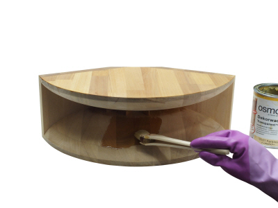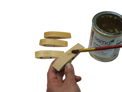 塗装はしなくても使えますが、すると綺麗な飴色になり塗膜が木材を保護してくれます。塗装をする場合は組み立て途中で手の届きにくくなるホーンのスロート周辺は組み立て前に塗ってしまうと良いです。ボンドがつくところは塗装しないようにマスキングしてください。