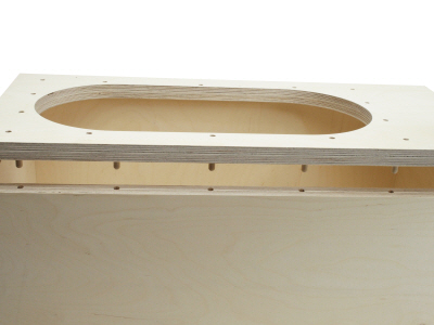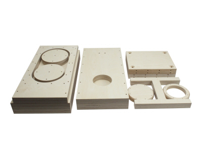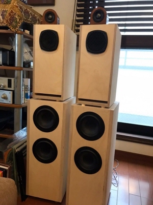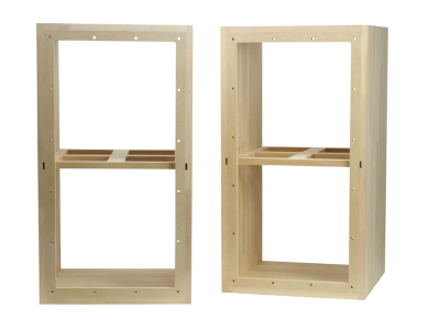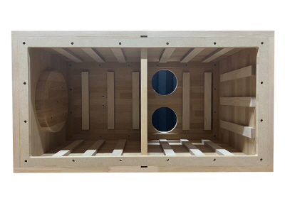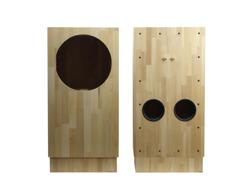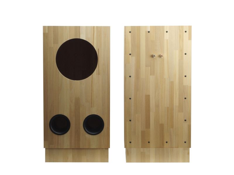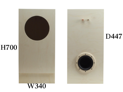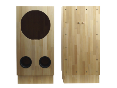 30センチ1発2発、38センチ1発の大口径ウーファー用エンクロージャーで140Lの最大容積のエンクロージャーになります。バフル・背板ともに交換式になります。Z503-Wodhorn1のようなフロントロードホーン用のウーファーボックスに最適な商品になります。