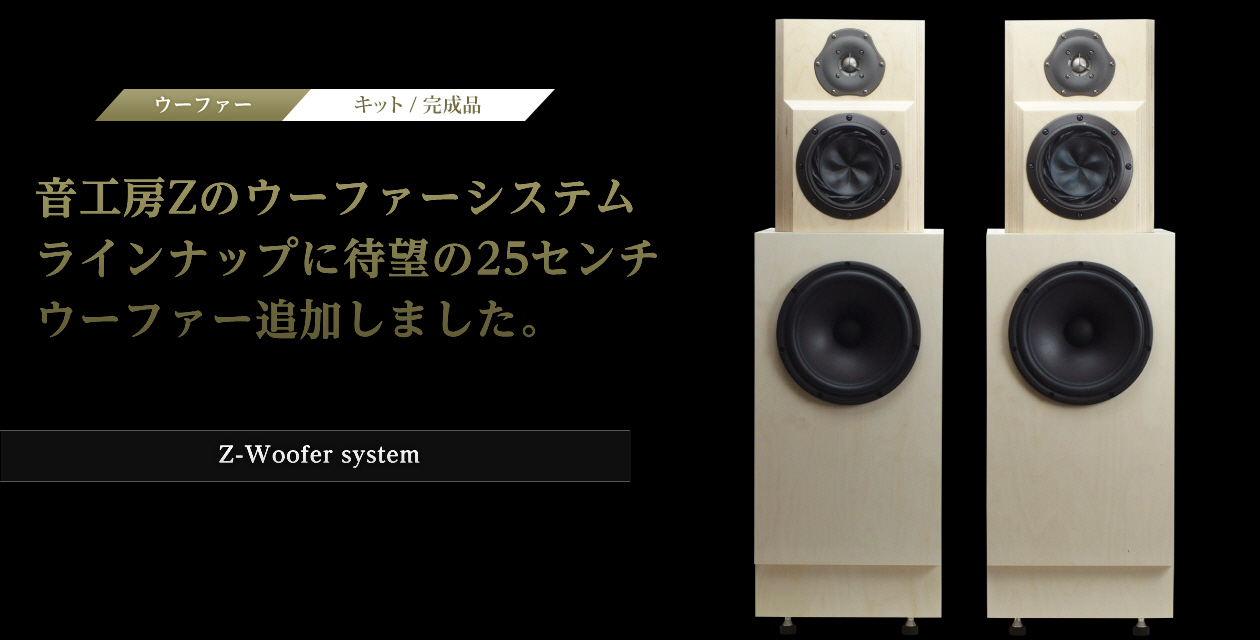 Z800-FW168HRの専用ウーファーZ505-Trentoの後継商品として、25センチ1発の3way用ウーファーをリニューアルいたしました。バフル交換式で20センチ2発の最強サブウーファーとしてもご利用いただける本格オーディオファン向けのモデルになります。ホワイトバーチバフル厚48mm(バフル24mm+インナーバフル24mm)採用で大爆音での利用も想定した商品になります。